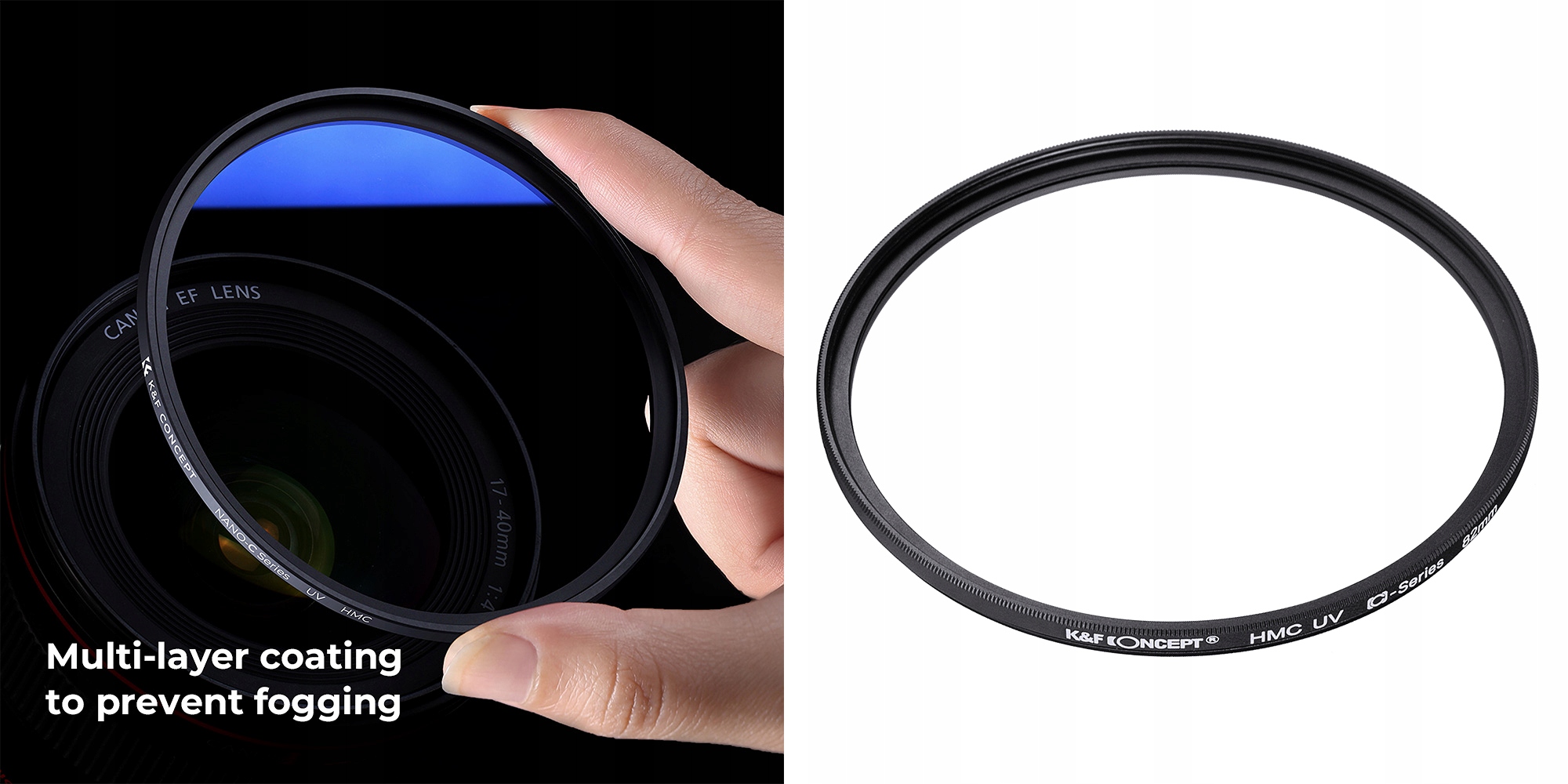Абревіатура «HMC» у випадку фільтрів для лінз означає «Hard Multi-Coated», тобто багатошарове покриття. Його використання призначене для покращення якості зображення шляхом зменшення відблисків, відблисків і спалахів. Використання кількох шарів, розміщених з обох боків фільтра, допомагає зменшити атмосферний туман, що позитивно впливає на контрастність і чіткість ваших фотографій. Вибравши УФ-фільтр K&F Concept Nano-C HMC, ви отримаєте ще кращу якість фотографій, зменшивши спотворення та недосконалості.