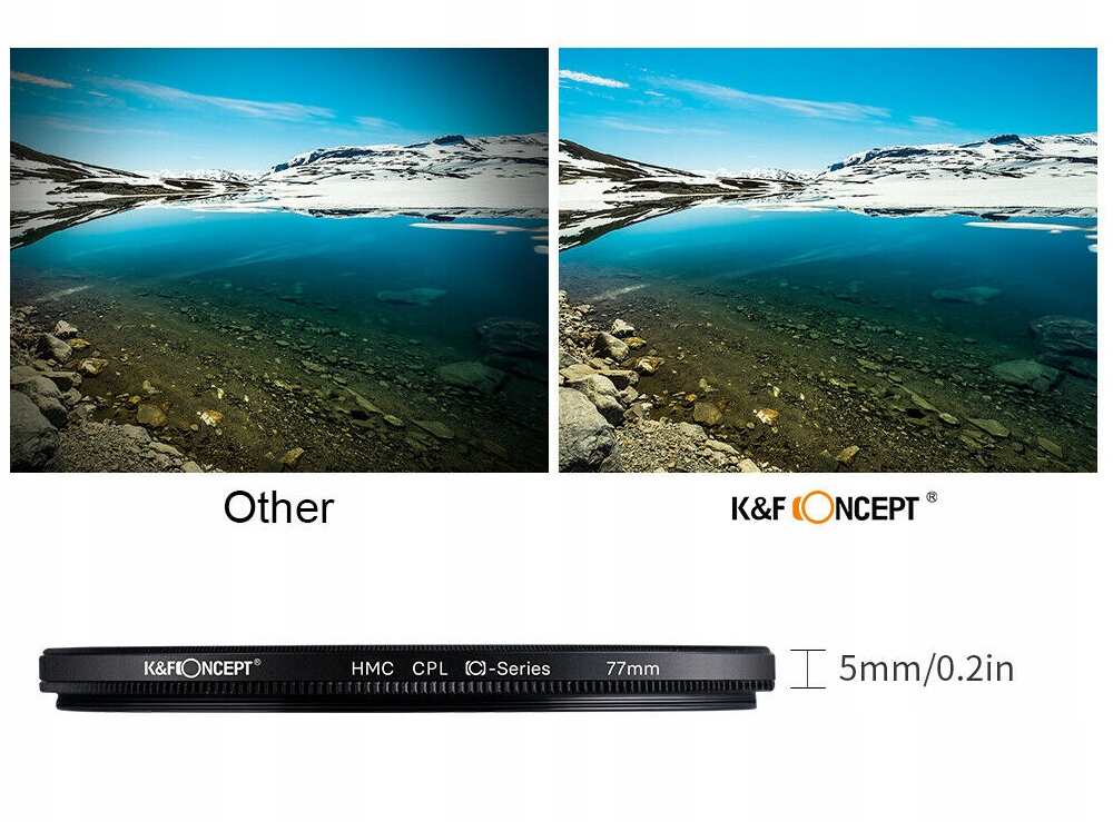 Компанія K&F CONCEPT представляє професійні поляризаційні фільтри CPL відмінної якості. Це високоякісні фільтри, небагато фільтрів можуть зрівнятися з якістю виготовлення та рівнем вдосконалення.