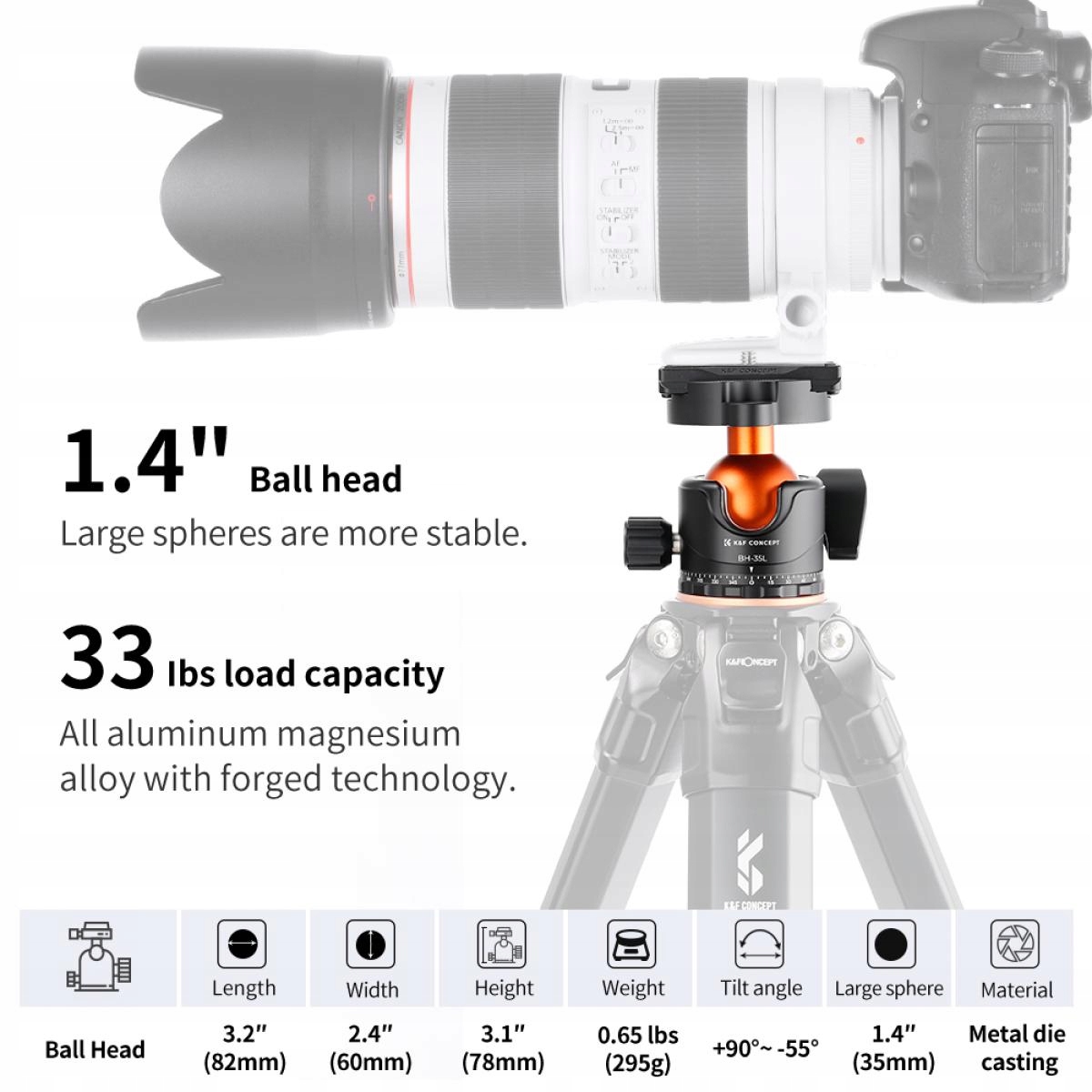 - Швидкий роз’єм типу ARCA 1/4 дюйма підходить для більшості цифрових дзеркальних камер і відеокамер.