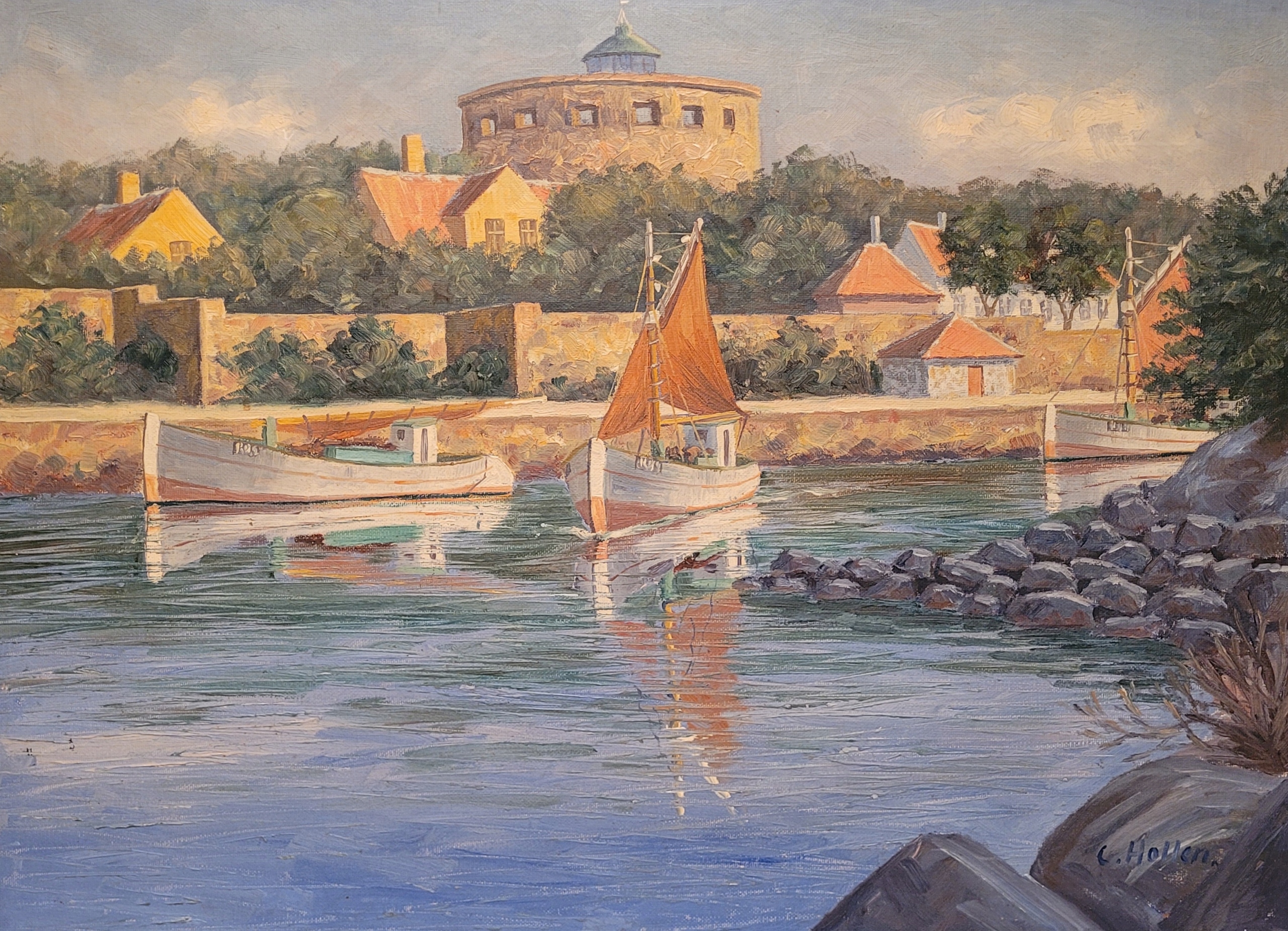 К.ХОЛЛЕН - "РИБАЛЬСЬКІ ЧОВНИ", стара картина маслом.