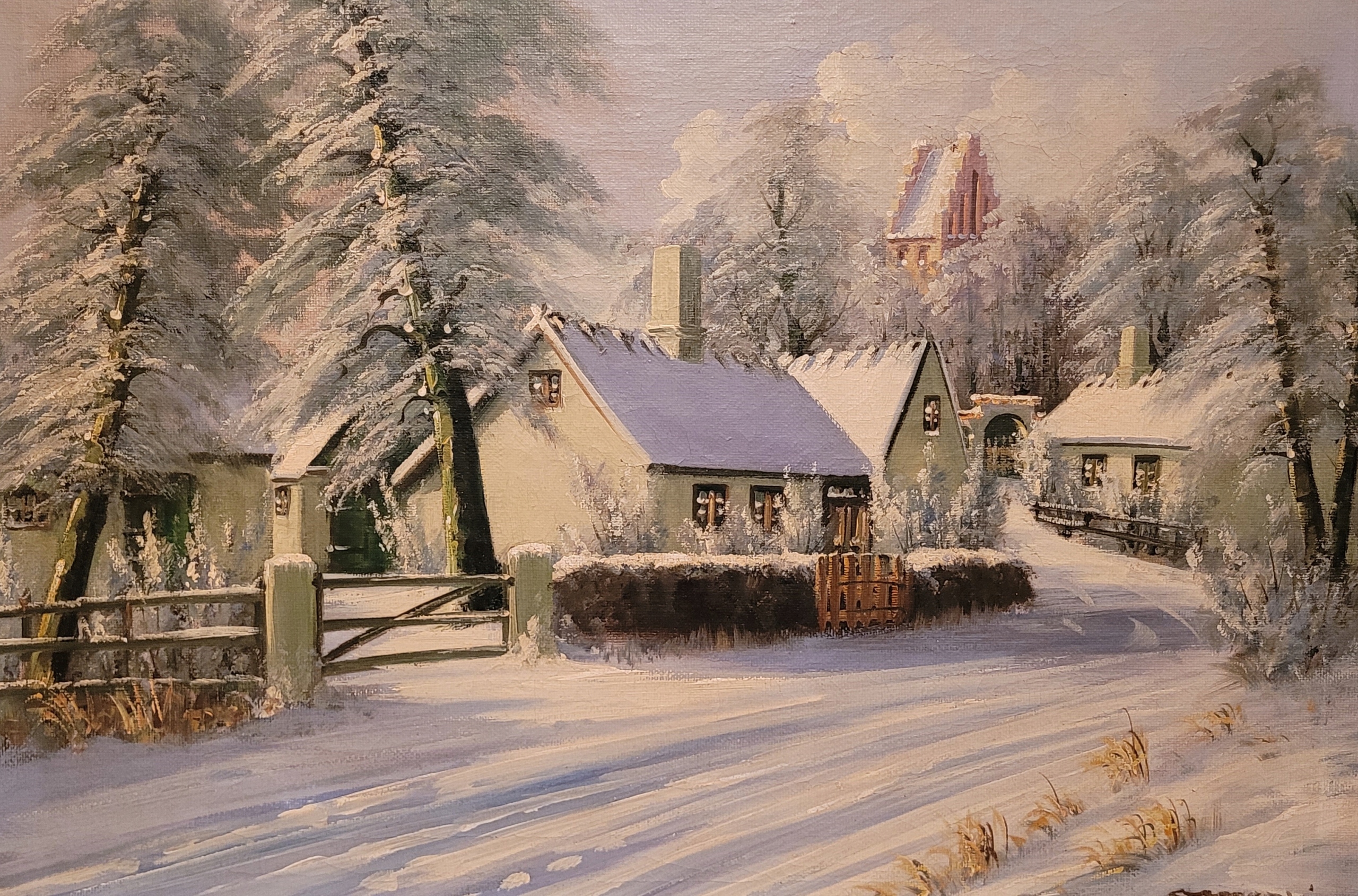 К.МЕРСІНГ - «ЗИМА НА СЕЛЕ», стара картина маслом.