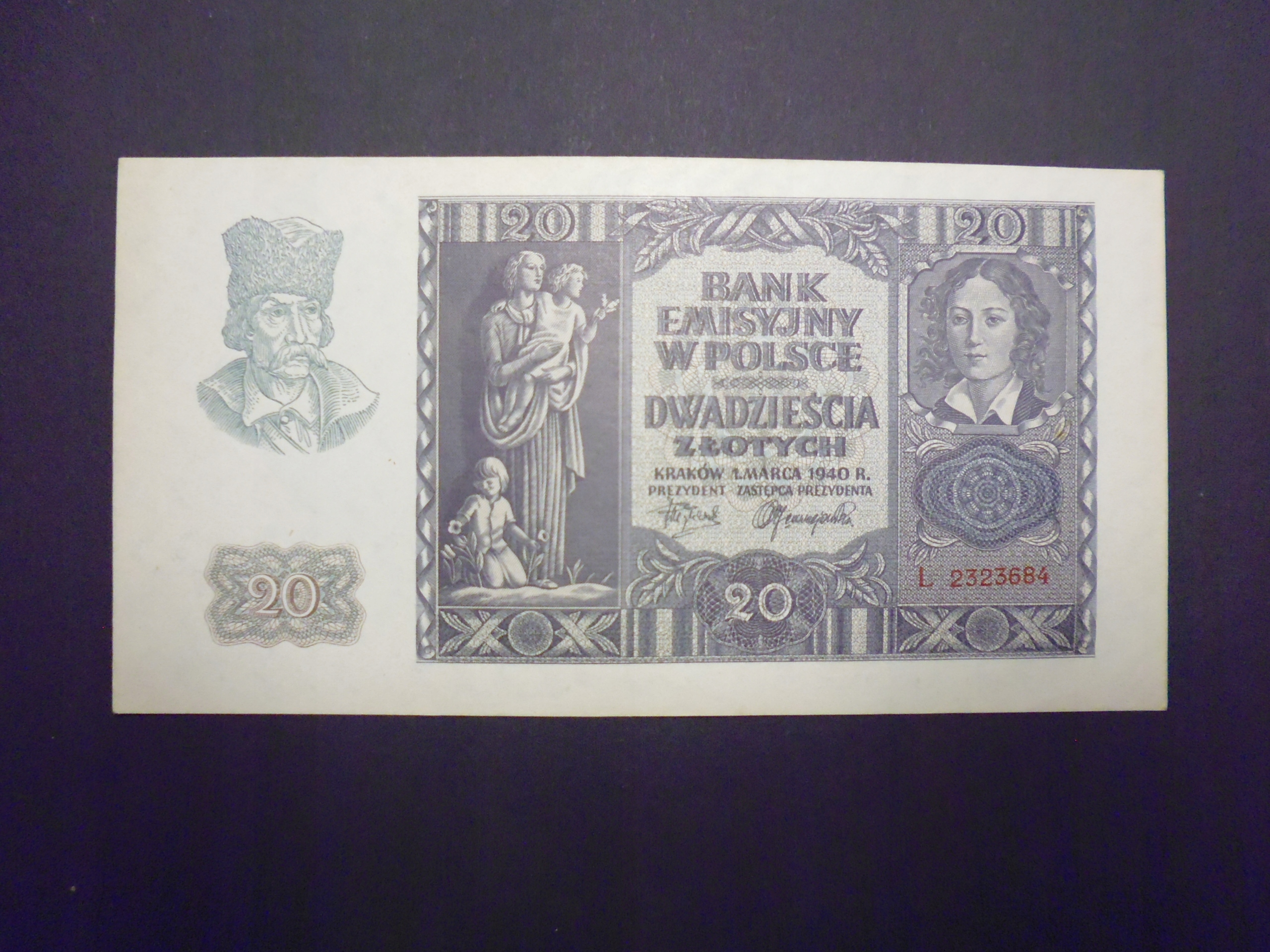 K177. 20 ЗЛОТИХ 1940 СЕРІЯ. L STATE 1 UNC