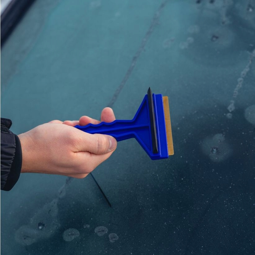 3️⃣ Використовуйте скребок, щоб видалити залишки снігу чи води та уникнути смуг.