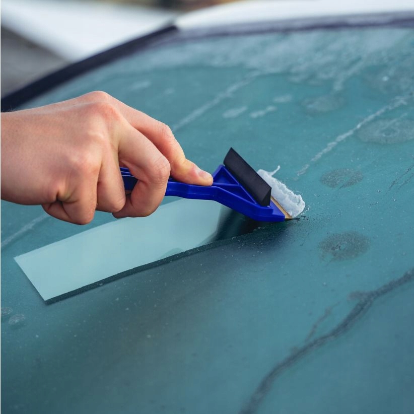 2️⃣ Проведіть скребком із латунним лезом по скляній поверхні, щоб видалити залишки льоду.