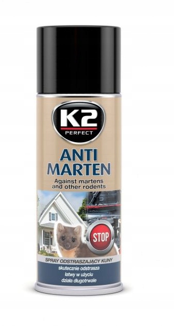 Дія K2 ANTI MARTENґрунтується на ароматичних речовинах, які не відчуваються людиною, але мають сильну дратівливу дію на куниць - тварин з дуже чутливим і чутливим нюхом. Використання продукту створює міцний, невидимий бар'єр, який захищає автомобіль від шкідників. Напилені елементи покриті ідеально зчепленою, липкою захисною плівкою, якої уникають куниці.