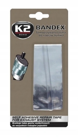 K2 BANDEX - це самоклеюча стрічка для ремонту глушника. Усуває шум від вихлопних систем у всіх типах транспортних засобів. Дуже економічний і стійкий до високих температур.