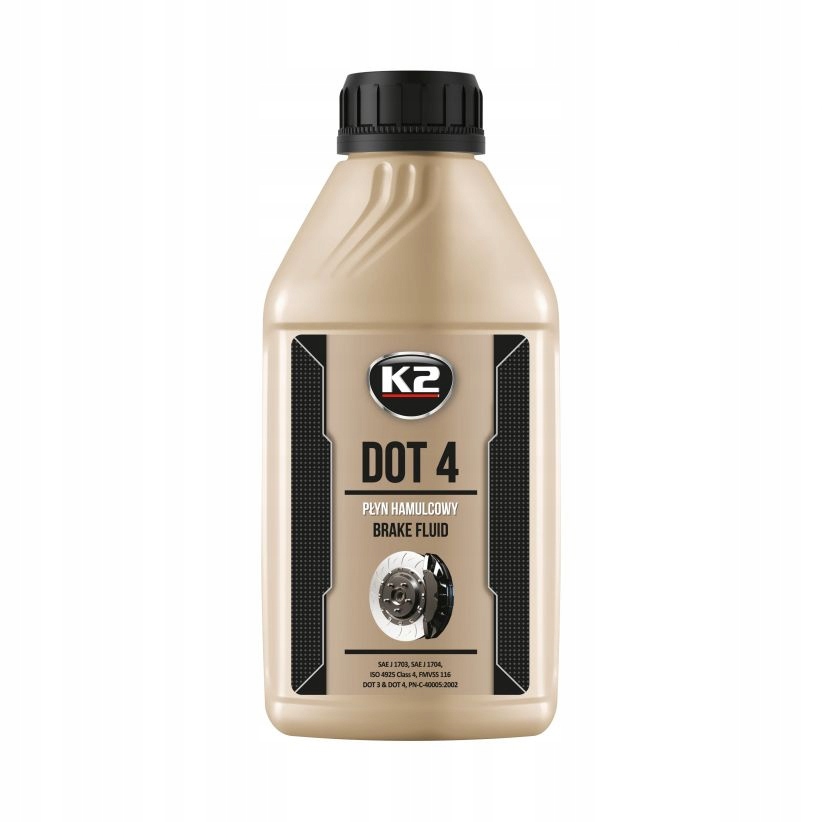 Гальмівна рідина DOT 4 має відмінні реологічні параметри, що дозволяє використовувати її при дуже низьких температурах. Він нейтральний до ущільнень і металевих сплавів, які використовуються в гальмівній системі, і захищає її від корозії. Гальмівна рідина K2 DOT 4 має температуру кипіння понад 230 градусів С, завдяки чому вона довше зберігає свої властивості. Продукт повністю змішується з іншими рідинами класу DOT.