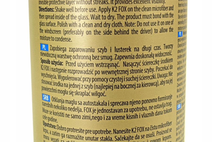 K2 FOX – чудовий засіб проти запотівання, який використовується для захисту вікон і дзеркал заднього виду від запотівання.