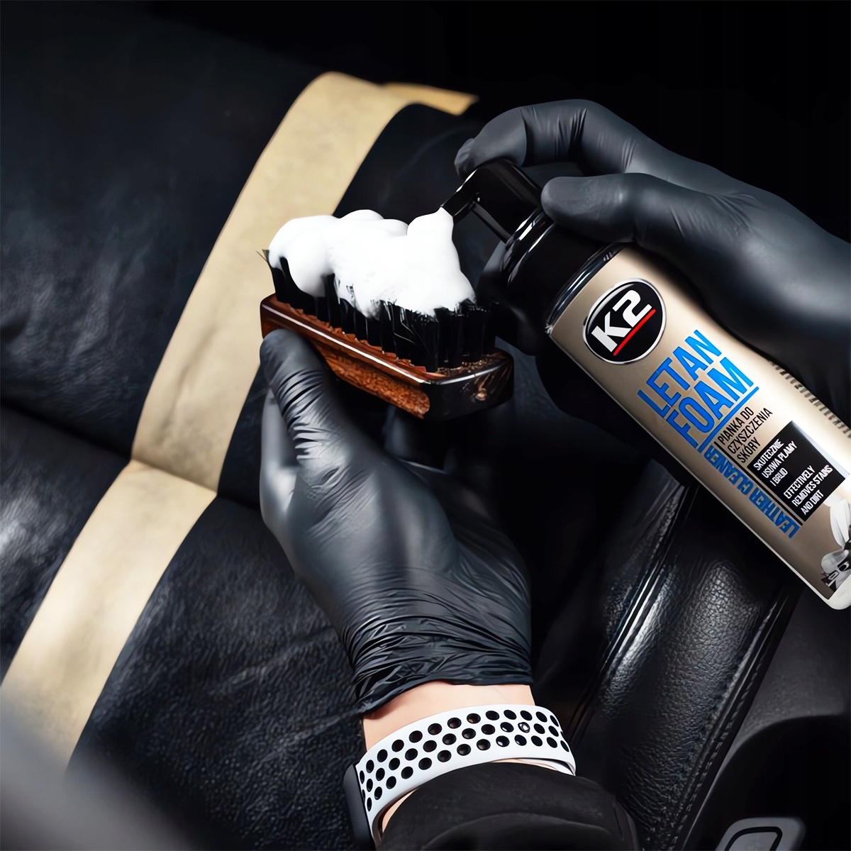 Високоефективний засіб для чищення шкіряної оббивки автомобіля. Пропонується у формі активної піни, яка при використанні разом із щіткою забезпечує високу очисну здатність.