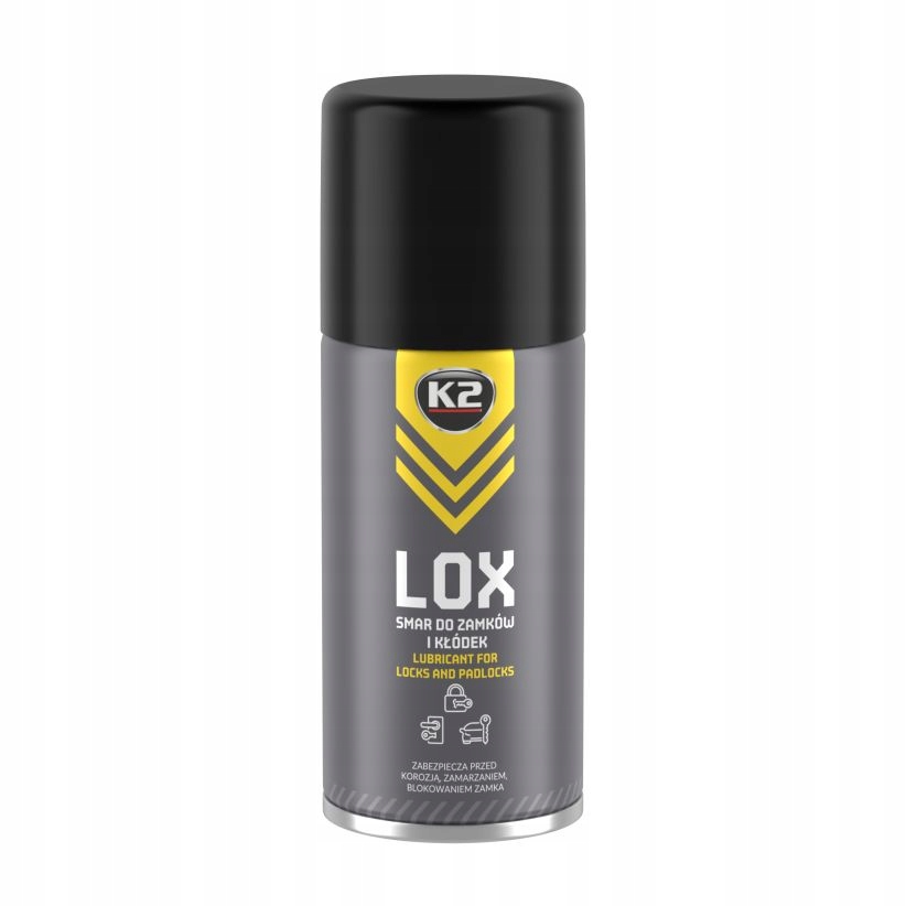 4 змащує та вивільняє механізми заклинювання у дверях, ворота, автомобілі, коробки, шафи, велосипеди тощоloice для замків k2 lox забезпечує плавну роботу вставки блокування в екстремальних умовах від -40 ° C до +200 ° C , захищає від корозії та збільшує життя. Він швидко випаровується, залишаючи делікатне змащувальне покриття. Навіть невелика кількість жиру k2 lox покращує роботу замка, навіть у випадку високо експлуатованих елементів. ефективні та довговічні. Для забезпечення належної роботи механізму блокування рекомендується використовувати кілька разів на рік.