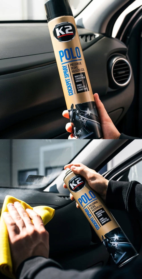 K2 POLO COCKPIT інтенсивно очищає, полірує та захищає від налипання бруду. Освіжає салон автомобіля, залишаючи один із чотирнадцяти ніжних ароматів.