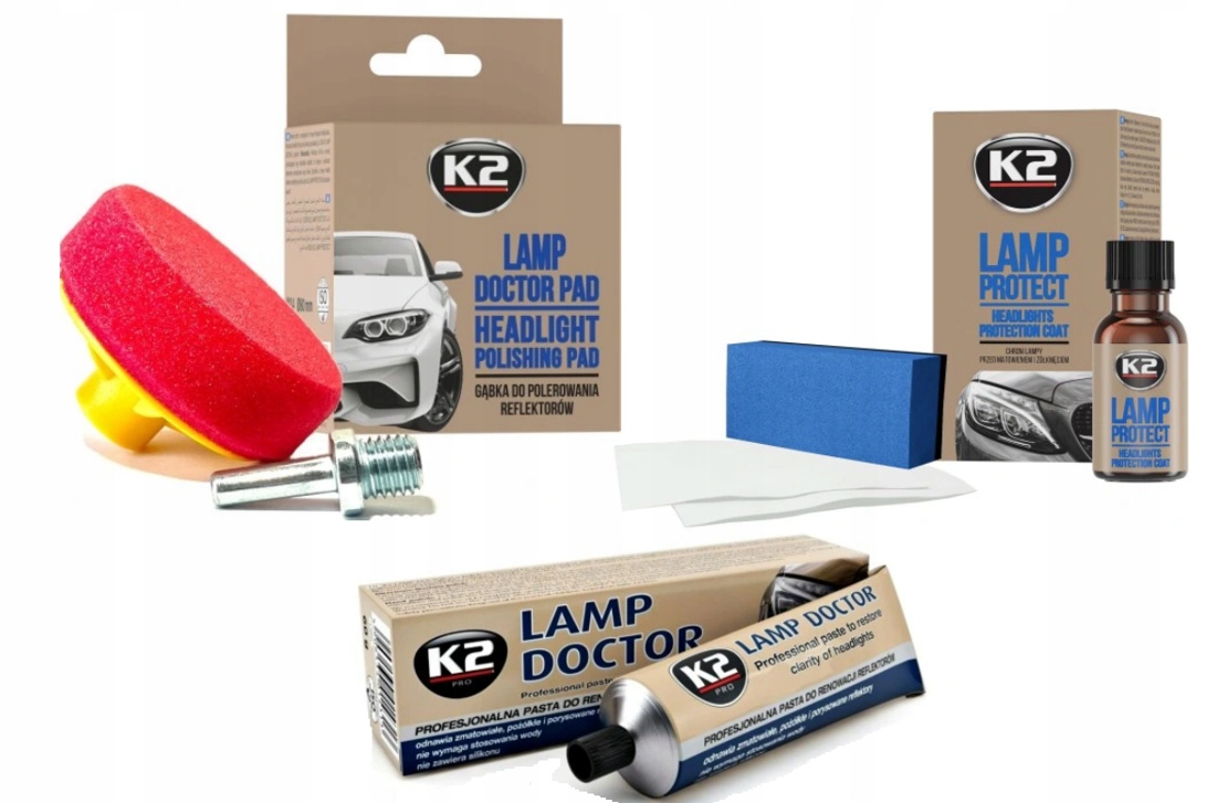 - Пасту K2 LAMP DOCTOR можна безпечно використовувати для ремонту інших прозорих елементів, наприклад, фар мотоциклів, караванів, човнів і навіть літаків.