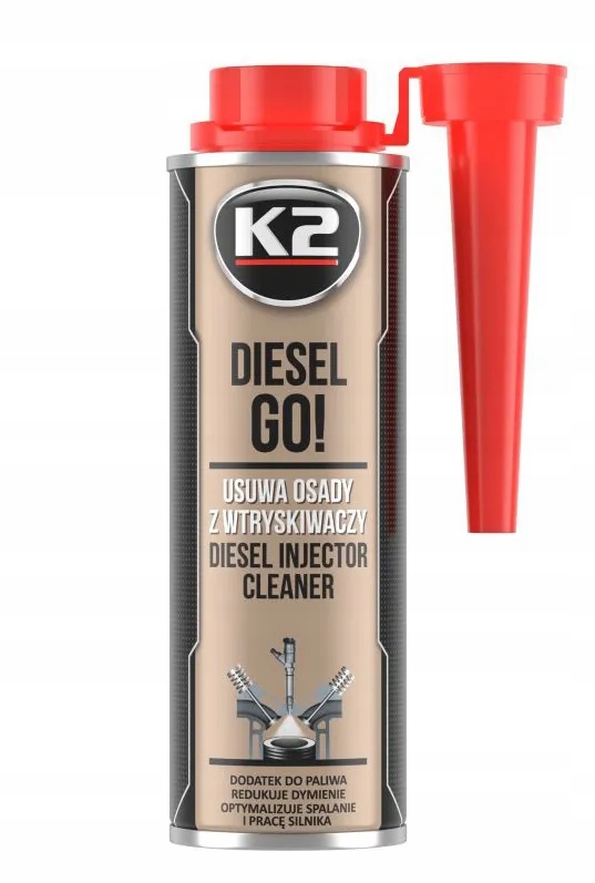 При додаванні в дизельне паливо K2 Diesel Go! розчиняє відкладення, що утворюються в насосах високого тиску, рейках упорскування, форсунках і блоках форсунок. У результаті він очищає форсунки та форсунки форсунок і ефективно покращує розпилення потоку впорскованого палива.