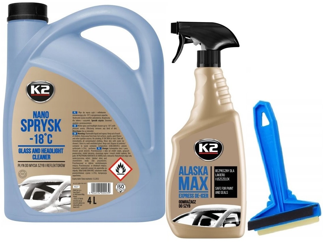 К2 Alaska розморожувач вікон також полегшує видалення замерзлих склоочисників і захищає їх від подальшого замерзання.