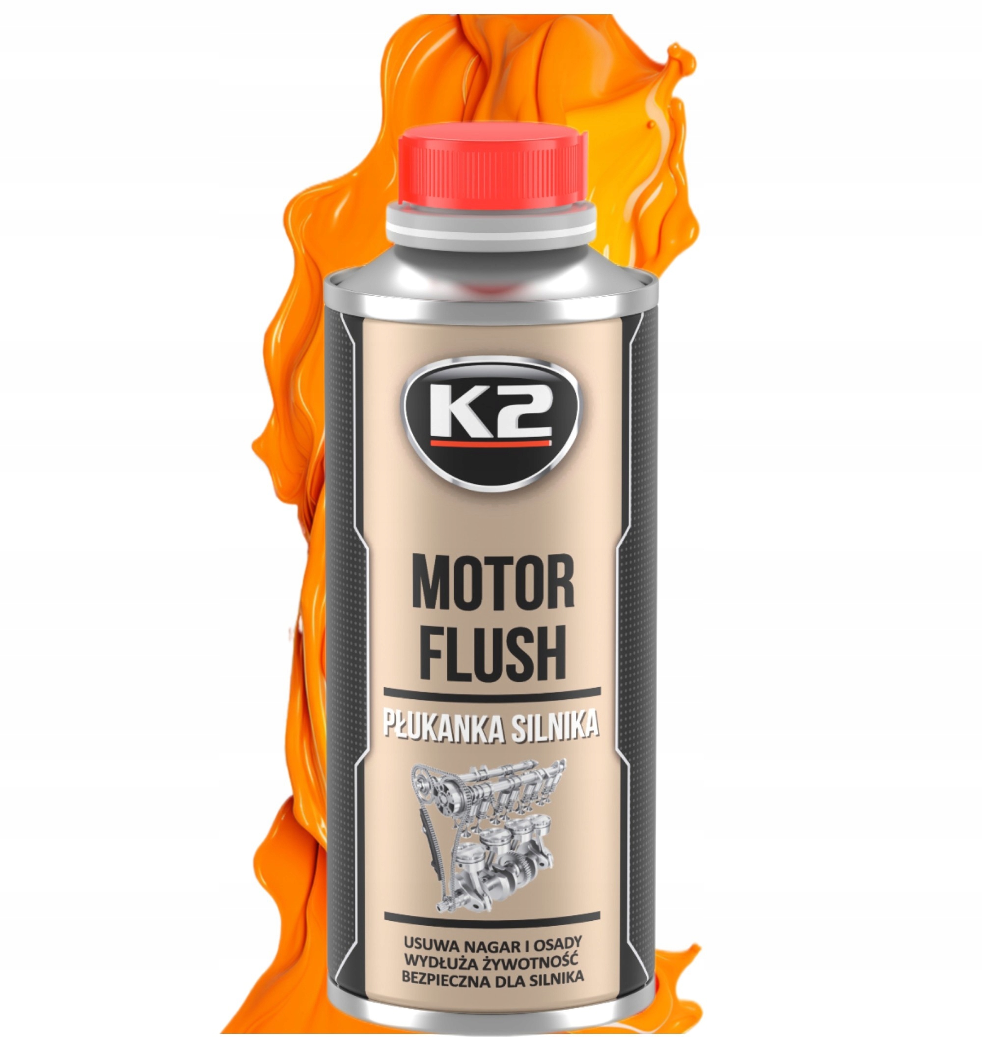 K2 Motor Flush можна використовувати у всіх двигунах внутрішнього згоряння - дизельних, бензинових і газових. Спеціальні змащувальні присадки, що містяться в промивці, захищають двигун від надмірного тертя, яке може виникнути внаслідок розрідження оливи після додавання промивки. K2 Motor Flush абсолютно безпечний для двигуна.