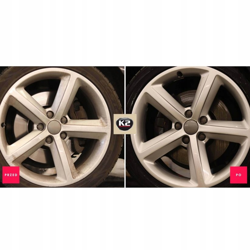 K2 ROTON 5L чудово видаляє всі стійкі забруднення, включаючи відкладення на гальмівних колодках і дорожній бруд, що призводить до червоного кольору нанесеної рідини. Мийка дисків рідиною – це швидко, ефективно та ефективно, не вимагає жодних зусиль. Бруд видаляється без ризику подряпати очищену поверхню.