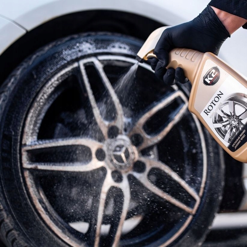K2 ROTON ефектно видаляє всі стійкі забруднення, включаючи відкладення на гальмівних колодках і дорожній бруд, що призводить до червоного кольору нанесеної рідини.