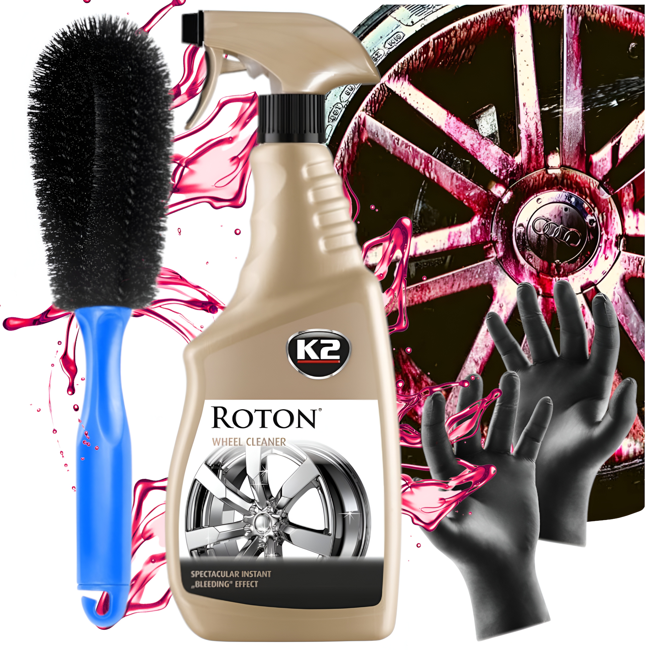 K2 ROTON ефектно видаляє всі стійкі забруднення, включаючи відкладення на гальмівних колодках і дорожній бруд, що призводить до червоного кольору нанесеної рідини. Мийка дисків рідиною - це швидко, ефективно та ефективно, не вимагає жодних зусиль. Бруд видаляється без ризику подряпати очищену поверхню.