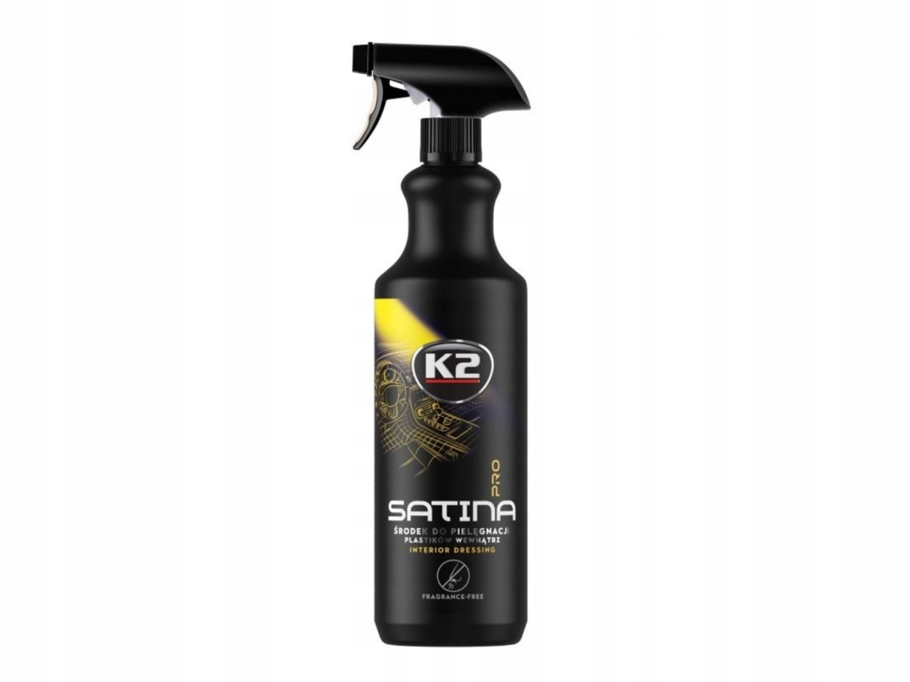 K2 SATINA PRO - засіб для догляду за пластиком в інтер'єрі автомобіля. Відновлює первісний вигляд, надаючи ніжний, ненав'язливий ефект легкого затемнення та підсилення кольору. Він ідеально підкреслює фактуру і структуру матеріалу, висуваючи на перший план найкрасивіше. В результаті контакту з продуктом оброблені поверхні набувають сатинування, без надмірного блиску або жирного нальоту.