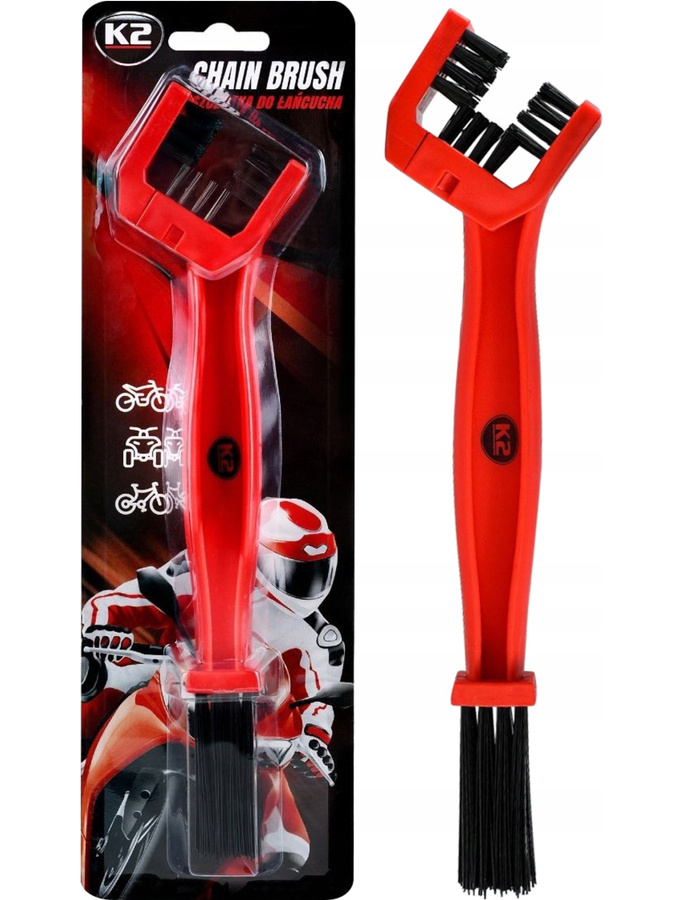 Універсальна щітка для чищення ланцюга K2, призначена для очищення ланцюгів приводу мотоциклів, мопедів, велосипедів (включаючи гірські) і квадроциклів.