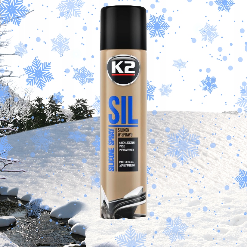 Ідеально підходить на початку зими, коли ущільнювачі чисті піддаються впливу низьких температур і замерзання, що може спричинити незворотні пошкодження. Завдяки силіконовому спрею K2 SIL ви уникнете боротьби із замерзлими дверима, які не хочуть відкриватися.