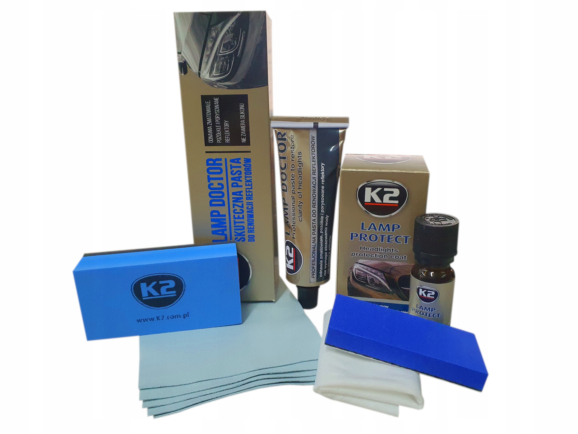 2. У випадку пошкоджених фари, перш ніж застосовувати до застосування, відшліфуйте світильники з лампами доктора K2, а потім знежирюйте поверхню, наприклад. з очищенням клінетів K2 T6.