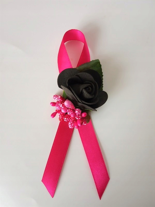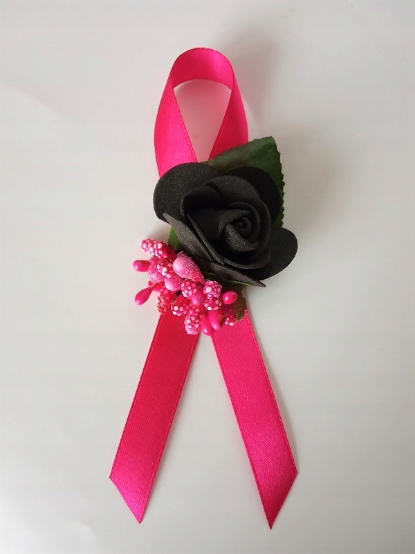 * рожевого кольору атласні стрічки шириною приблизно 12 мм і довжиною приблизно 40 см,