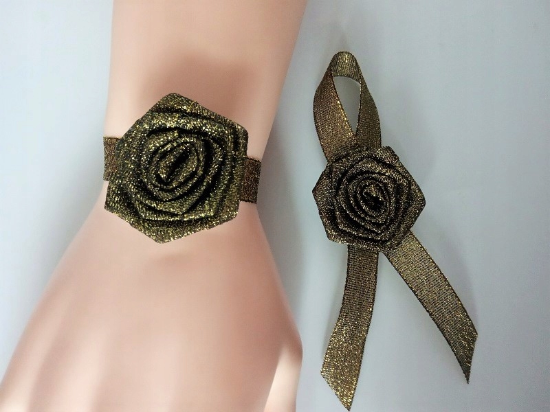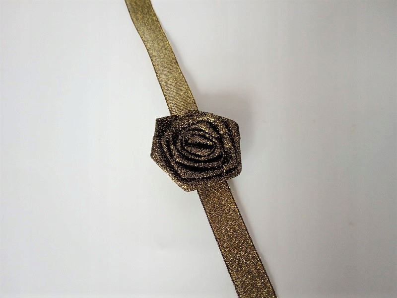 Прикраса виготовлена з троянди з атласу та стрічки. Ширина стрічки становить приблизно 12 мм, довжина - приблизно 40 см.