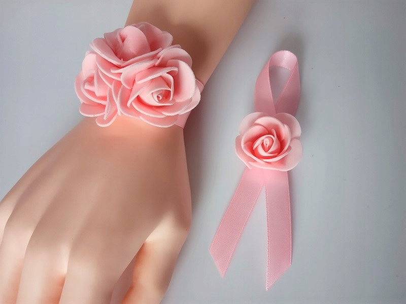 * рожева атласна стрічка, приблизно 25 мм завширшки та приблизно 40 см завдовжки,