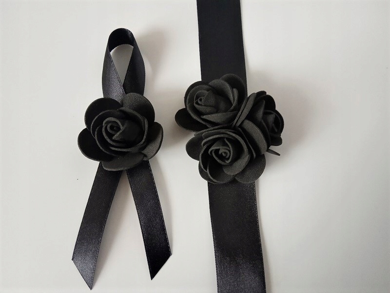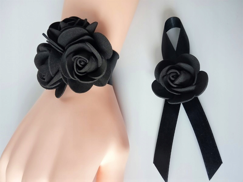 * чорна атласна стрічка, приблизно 25 мм завширшки та приблизно 40 см завдовжки,
