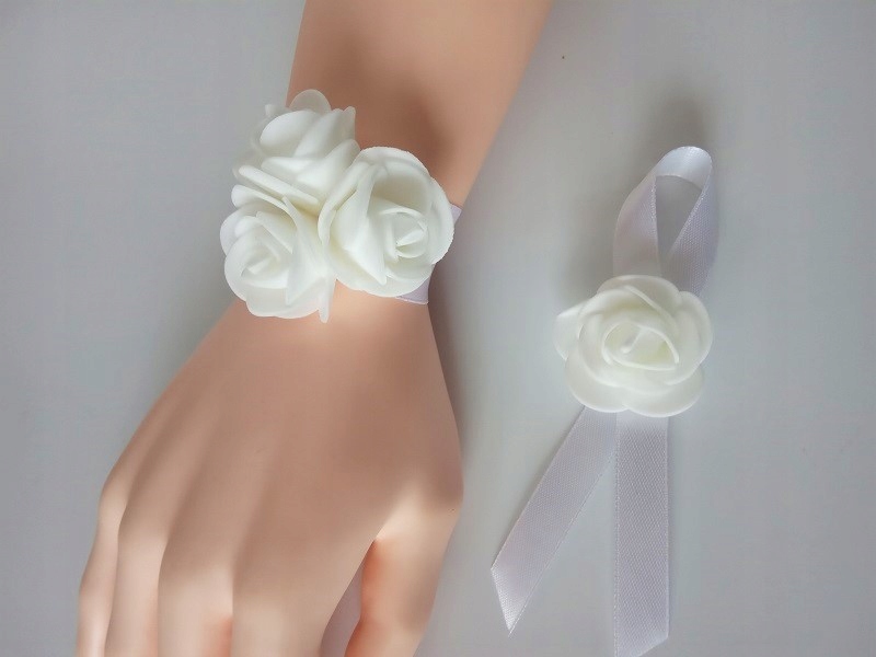 * три білі пінопластові троянди, приблизно 3 см у діаметрі.