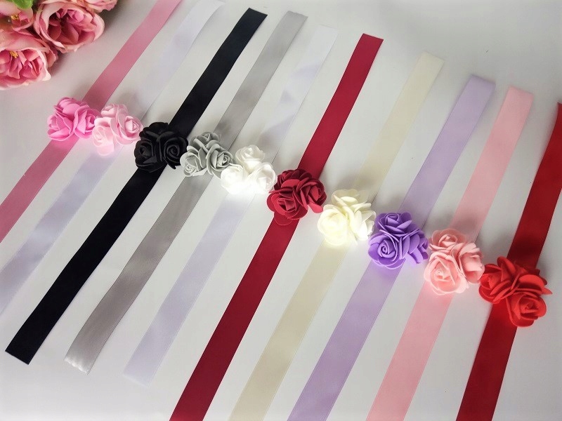 * біла атласна стрічка, приблизно 25 мм завширшки та приблизно 40 см завдовжки,