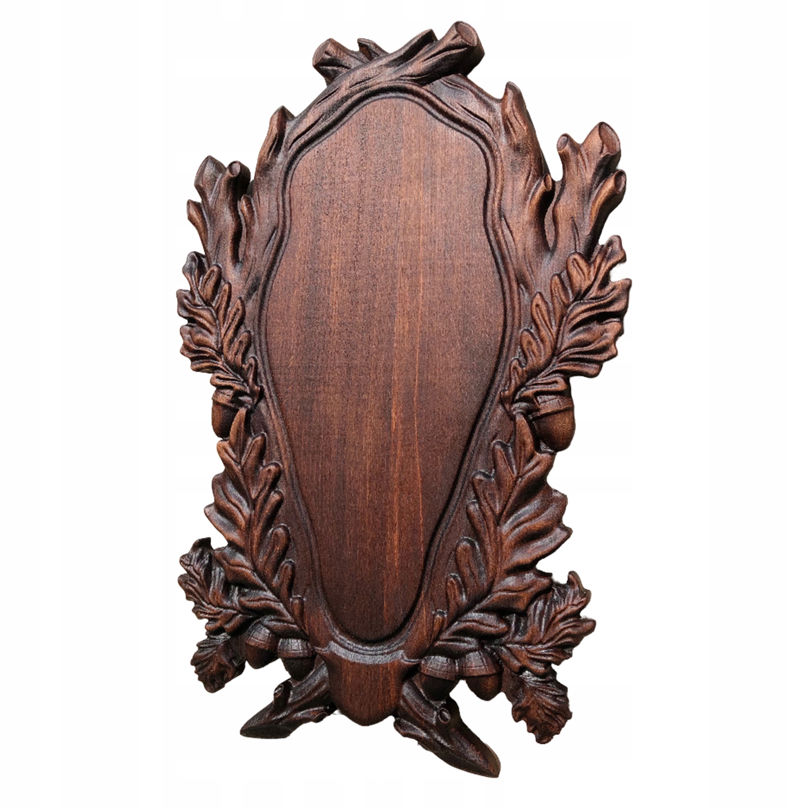 Для трофею ми представляємо витончену різьблену дошку з бука. Дошка оброблена спеціальною морилкою та бджолиним воском, що дозволяє отримати ефект натурального дерева.