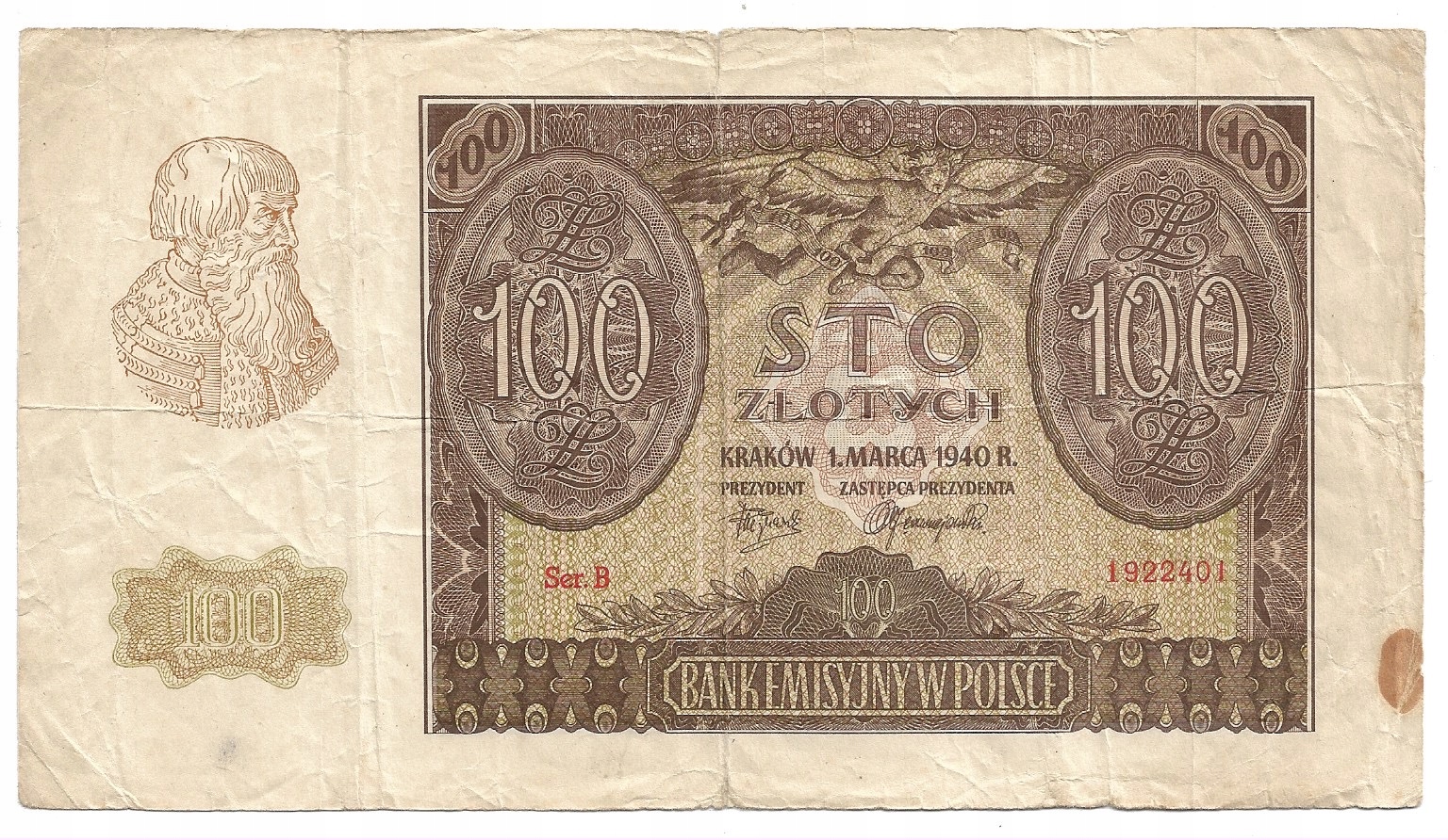 K619 - 100 злотих 1940 - Серія B - Стан 4