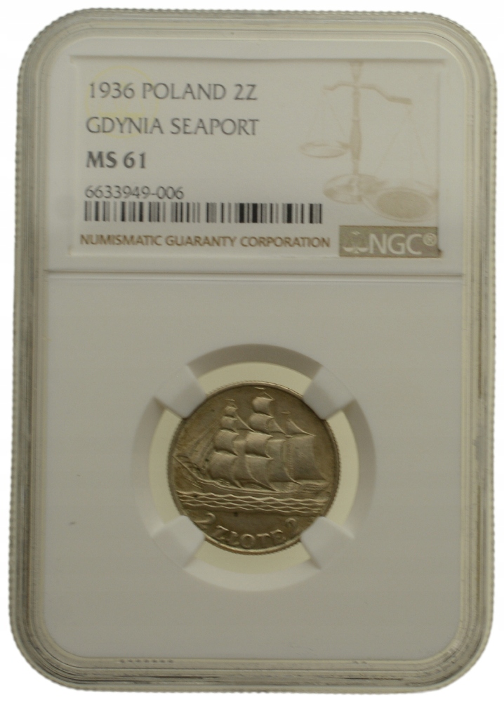 K748 - 2 злотих 1936 - Вітрильник - Оцінка NGC MS61