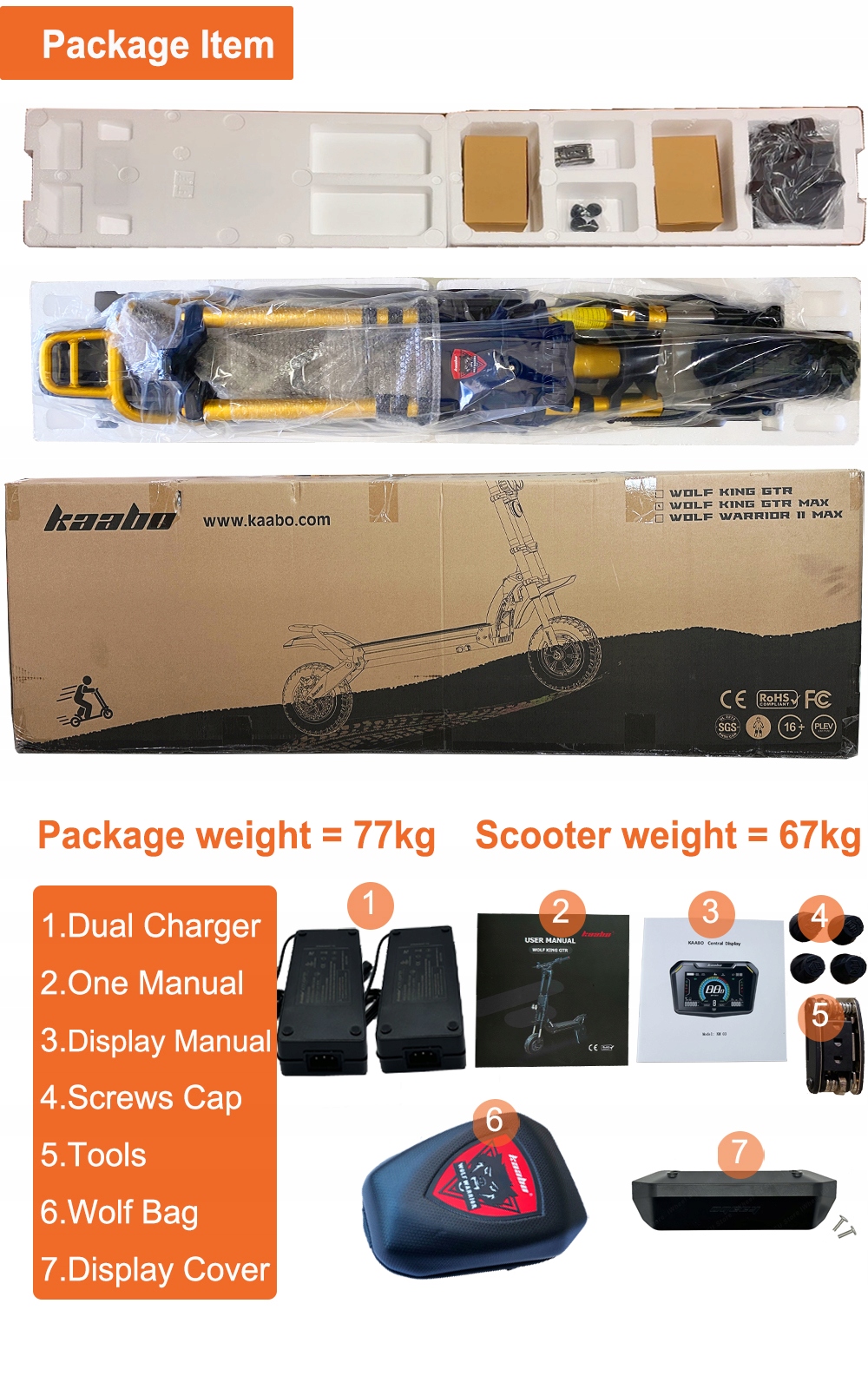 Оплачивая «Kaabo Wolf King GTR MAX 72В 40Ач», вы можете быть уверены, что данное изделие из каталога «Электрические скейтборды» будет доставлено из Польши и проверено на целостность. В цене товара, указанной на сайте, учтена доставка из Польши. Внимание!!! Товары для Евросоюза, согласно законодательству стран Евросоюза, могут отличаться упаковкой или наполнением.