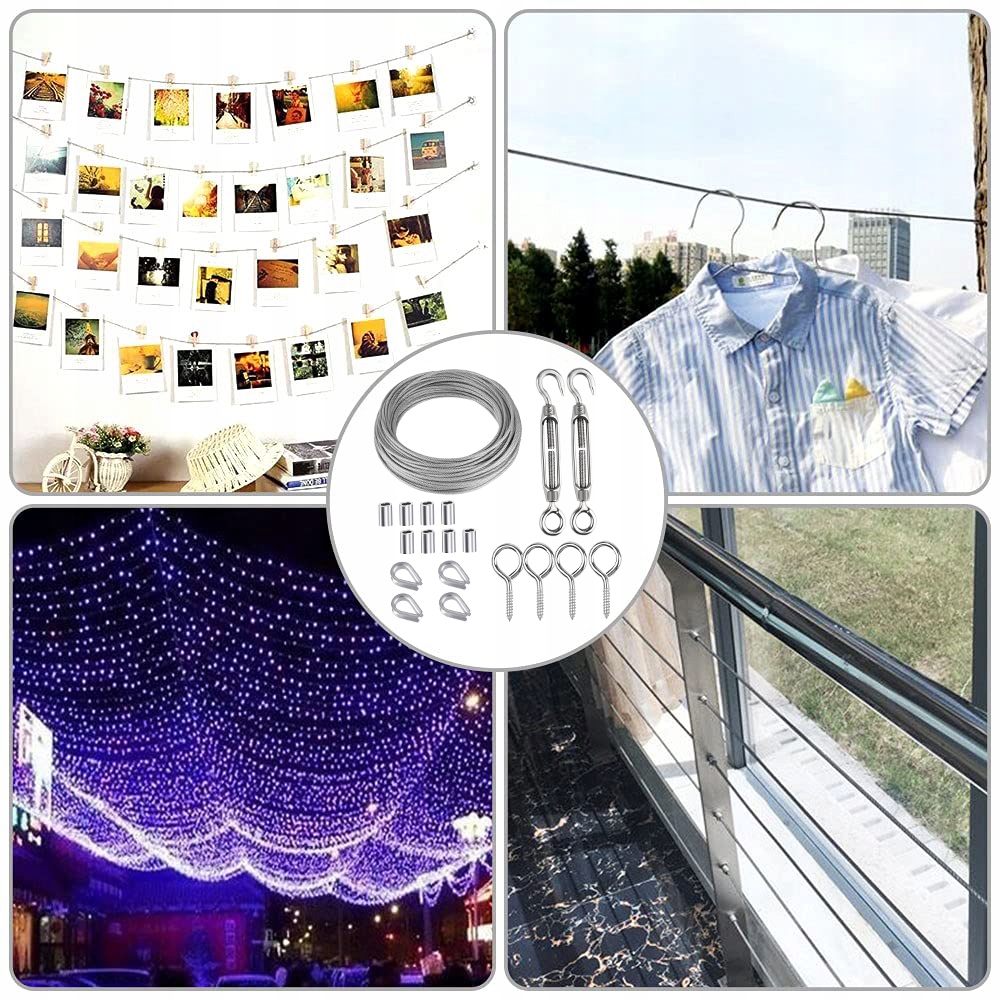 ⬅️⬅️Багатофункціональний 3-мм набір дротяного троса:Набір шарнірного натягувача дроту M6 може виконувати широкий спектр важких завдань і забезпечувати більшу гнучкість у використанні, набори дроту для тренування рослин, садовий дріт для в'юнких рослин, опора дроту для троянд, струни підвісних світильників на відкритому повітрі, комплект мережевого дроту, набори дроту для шпалів, комплект дротяних решіток, набір дроту гліцинії для стіни, дріт для штор патіо, комплект дроту для перголи, натяжний дріт, набір мотузок для білизни, ідеально підходить для натягувача дроту для огорожі, теніоснер для саду, балюстрада своїми руками, зовнішні кабельні поручні.