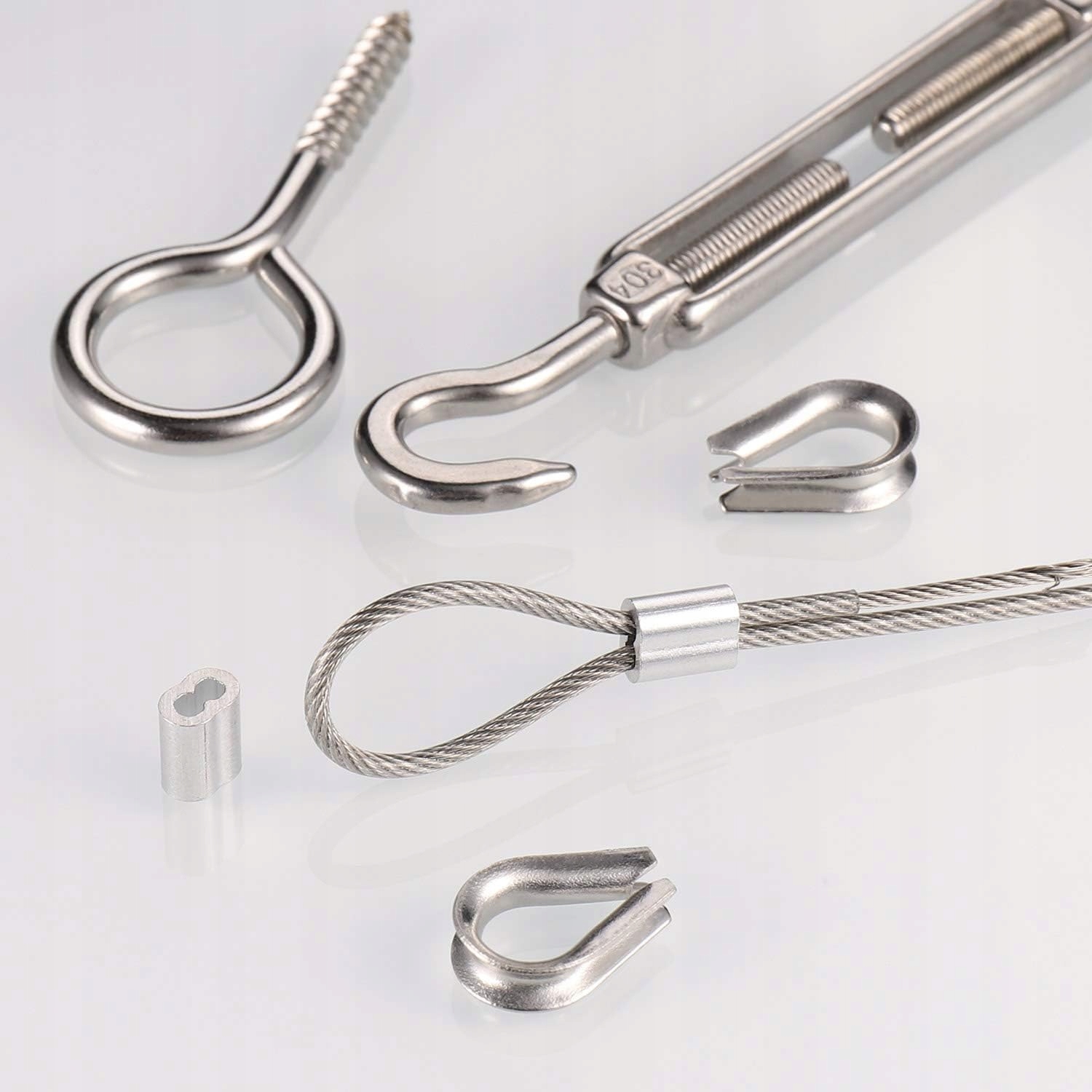 ⬅️⬅️Набір натягувачів дроту з поворотною пряжкою:Міцний гачок для лози та вушко, що входять у комплект, є ідеальним аксесуаром для підвішування своїми руками для важких завдань, усе зроблено з нержавіючої сталі 304. Алюмінієва цанга виготовлена з алюмінію, забезпечує хорошу стійкість до корозії та іржі, міцна та довговічна, дозволяє використовувати в будь-яку погоду та всюди!