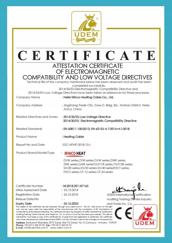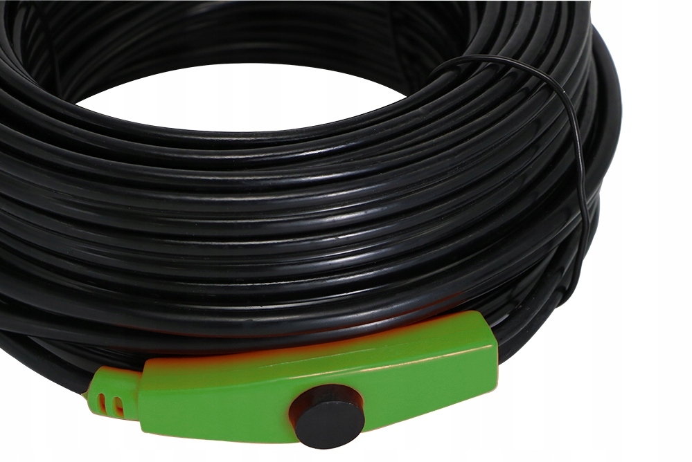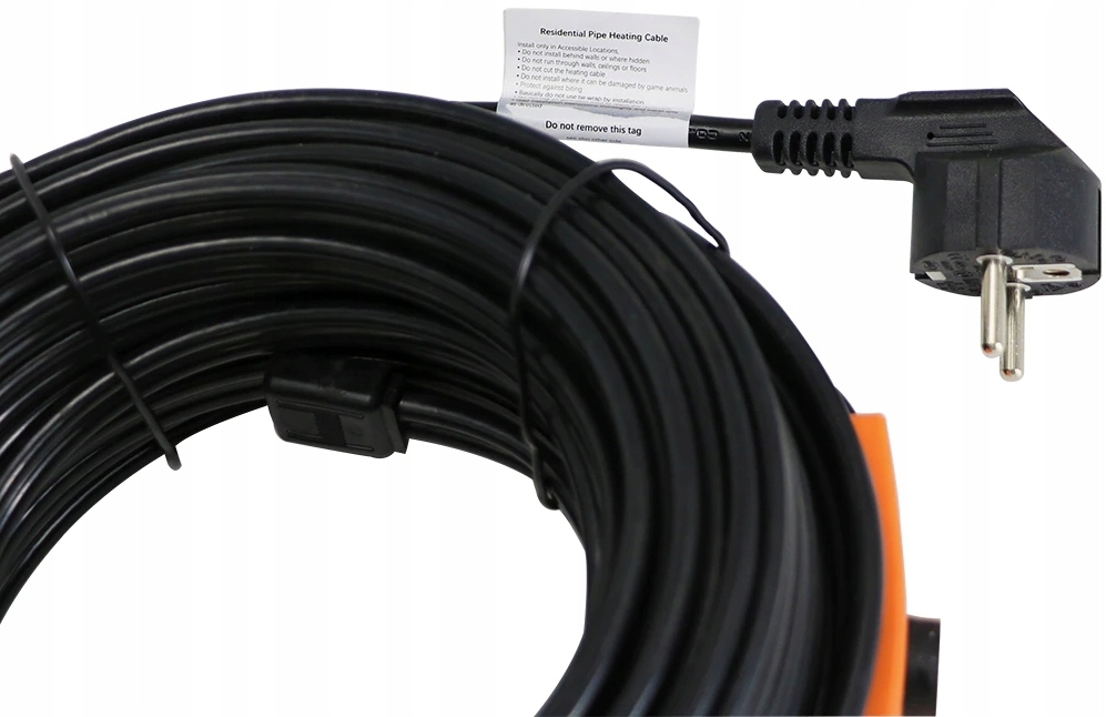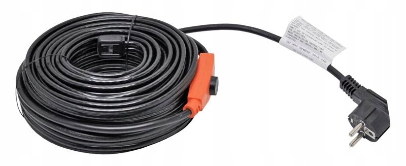 Нагрівається до температури макс. 65 градусів. Термостат вмикає нагрівання кабелю при температурі нижче 3°C і вимикає при температурі вище 10°C (температура труби).