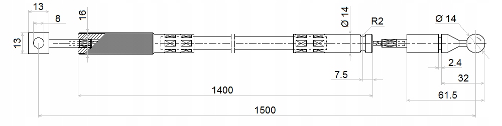 - Квадратне вушко з отвором 8 мм і рифленим корпусом 13 мм.