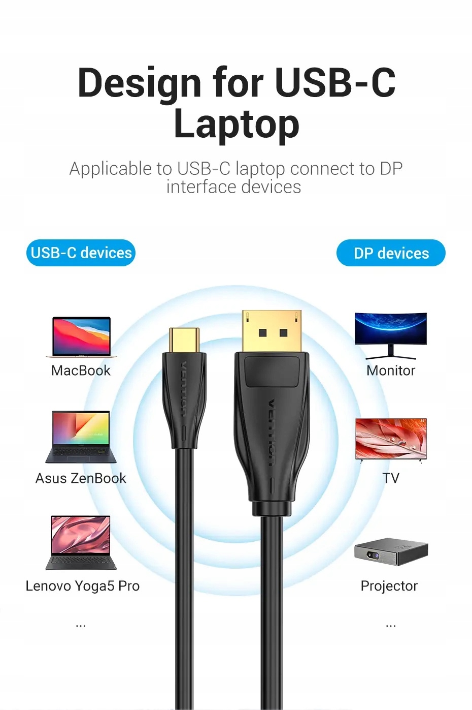 Кабель Vention не тільки сумісний з ноутбуками відомих брендів, але також ідеально працює з моніторами, телевізорами та проекторами.