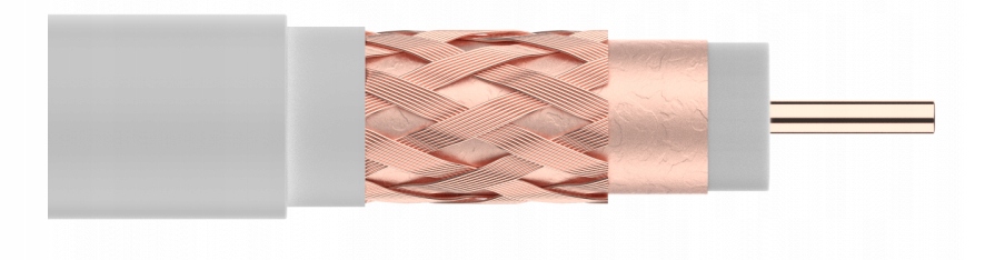 Внутрішній провід Televes T-100 діаметр кабелю 1,13 мм виготовлено з міді. Кабель має дуже хороші параметри затухання і може використовуватися в установках до 3 ГГц.