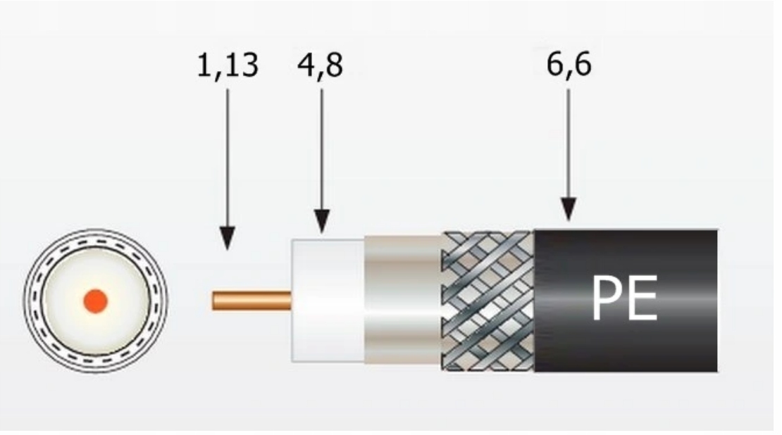 - Мідний внутрішній провідник діаметром 1,13 мм