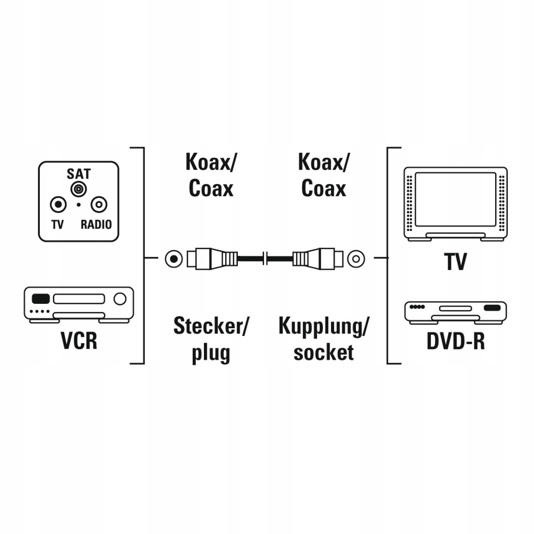 Провід/кабель коаксіальної антени RTV хорошої якості з штекерами Coax RF (штекер) - гніздо Coax RF (гніздо), довжиною 1,5 м, білий