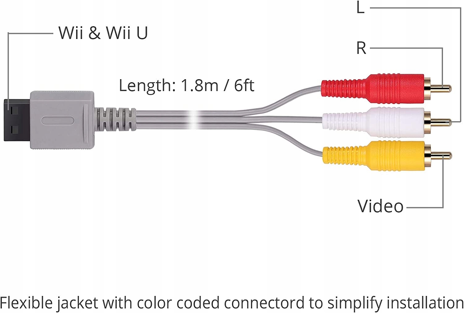 Довжина кабелю становить 6 футів, що дає вам велику гнучкість під час налаштування консолі та телевізора