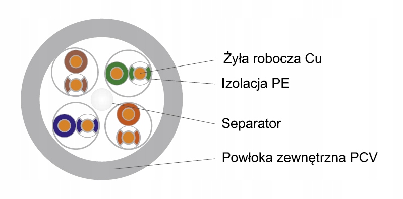 Покриття: чотири пари провідників, скручених у центр на центрально розташованому розділювальному елементі