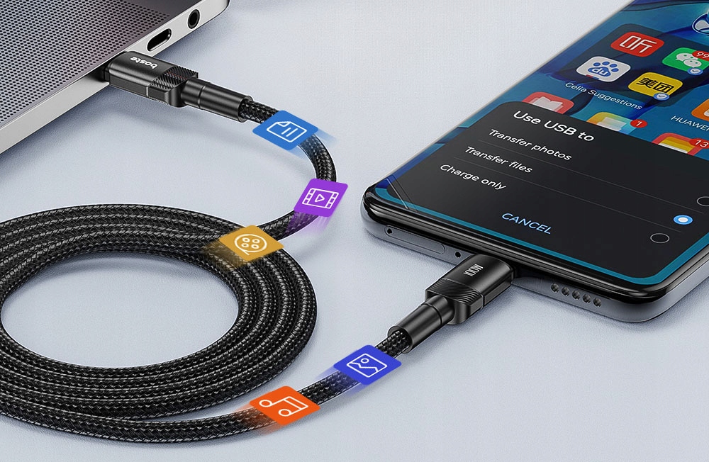 Кабель також забезпечує швидку синхронізацію даних зі швидкістю до 480 Мбіт/с, що забезпечує ефективне керування файлами під час заряджання.