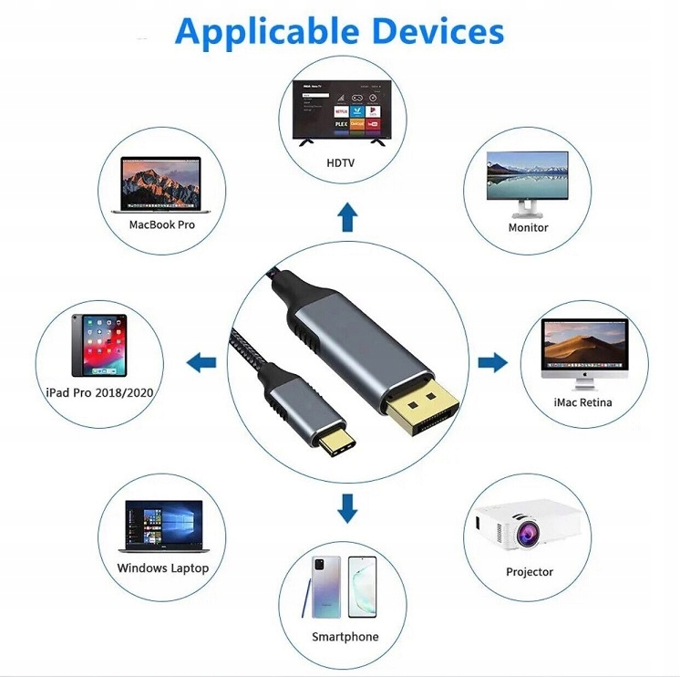 - Сумісний із підключенням до всіх пристроїв із відеоінтерфейсом Type-C і виходом DisplayPort