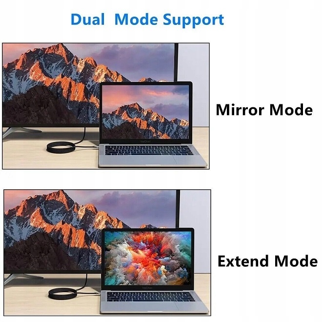 ➤[ПРИМІТКА]: усі комп’ютери/ноутбуки, під’єднані до цього кабелю, мають підтримувати DP Alternate Режим. Переконайтеся, що ваш хост USB-C підтримує режим DP Alt. Якщо вам потрібен відеовихід 8K, ви повинні мати джерело 8K і монітор 8K. Для пристроїв USB 3.1 Gen 1 і Samsung Galaxy S9/S8 синхронізація може тривати довше, наберіться терпіння та знайдіть більше часу