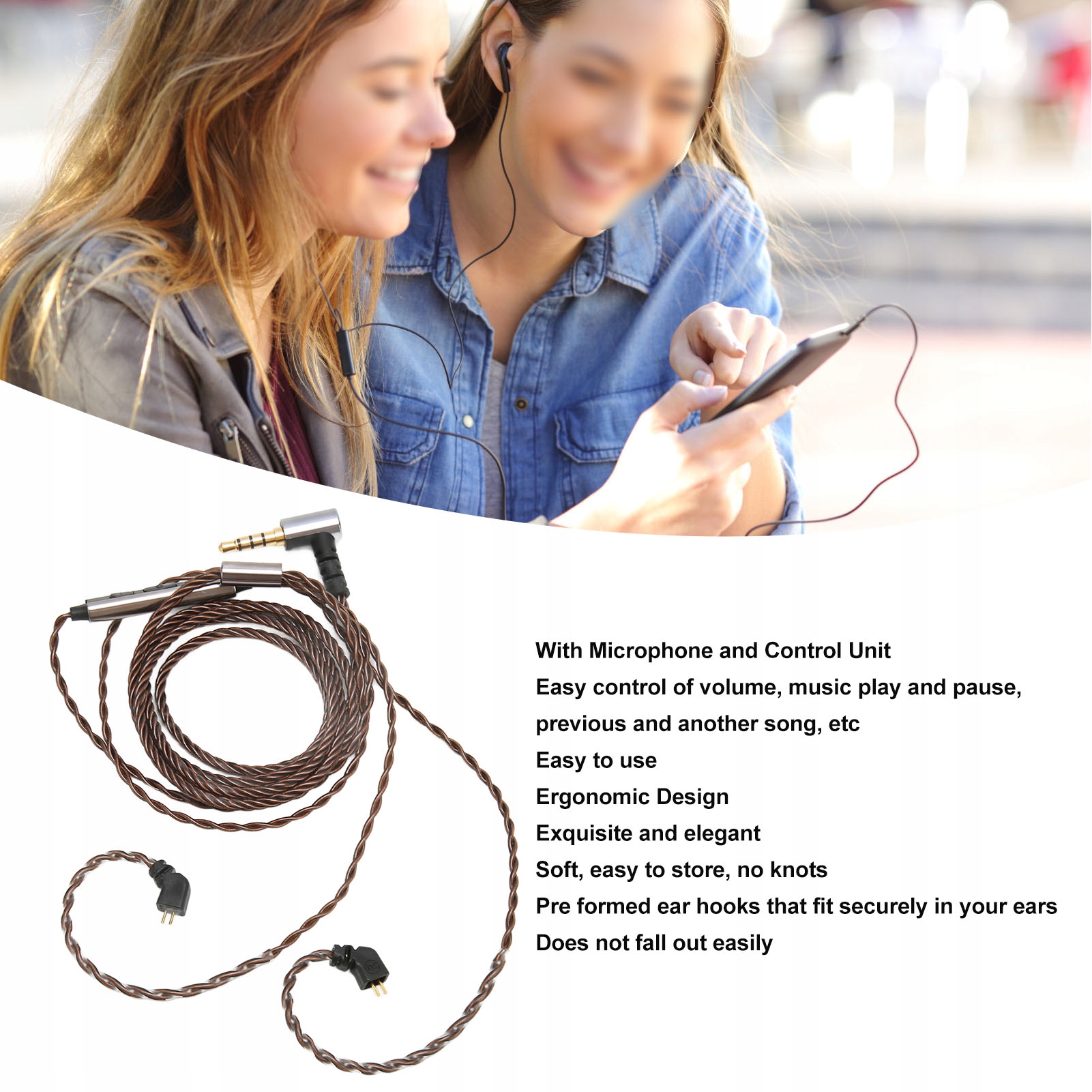 5. [Гуманізований дизайн] Провід навушників виглядає вишукано та елегантно. М'який, зручний у зберіганні, без сучків. Попередньо сформовані вушні гачки, які надійно фіксуються у вухах. Ви можете носити їх незалежно від того, любите ви спокійну музику чи займаєтеся спортом.